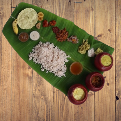 Traditional method of serving Sadhya with our box of 100 fresh banana leaves. Not only do they add a unique touch to your meal, but they also offer health benefits such as boosting metabolism and promoting digestion.